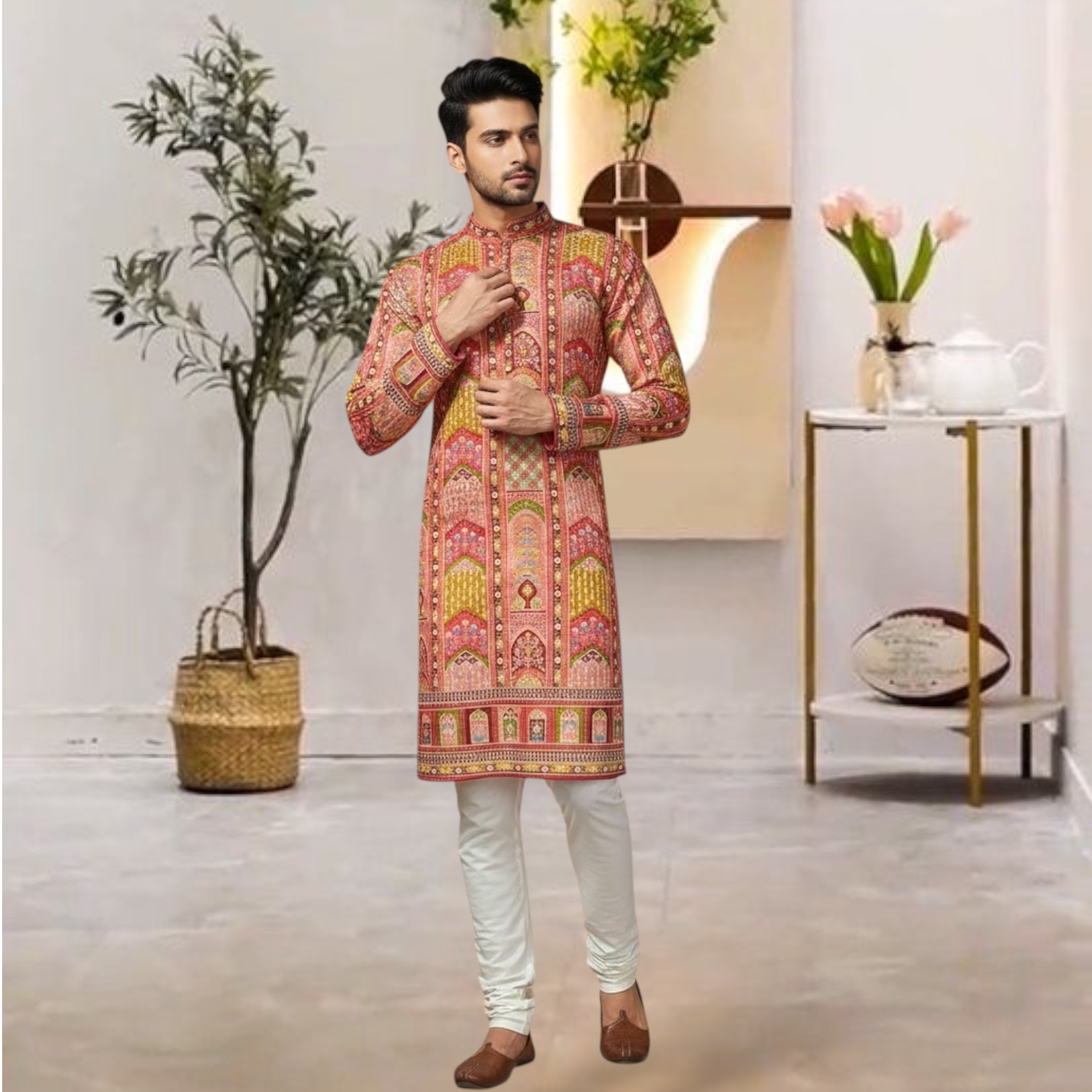"Akshay" Premium digital printed kurta with thread embroidery.