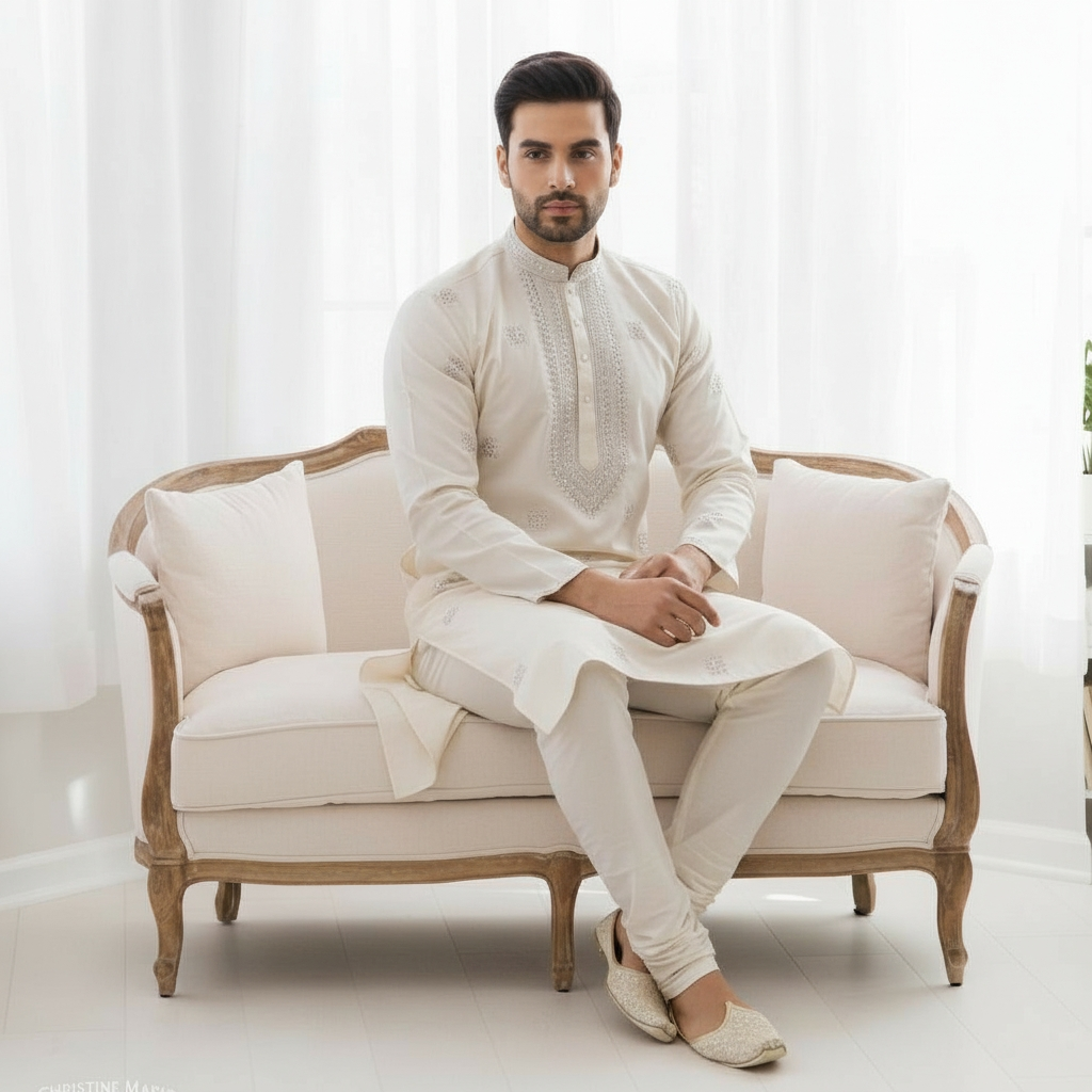 "Dushyant" Premium shaded cotton silk kurta with beautiful embroidery and lining.