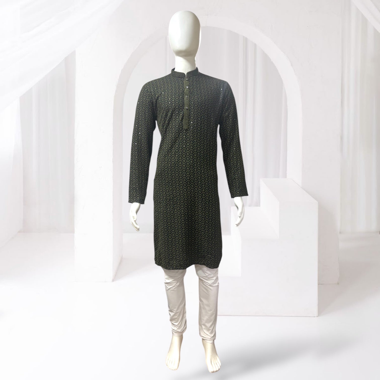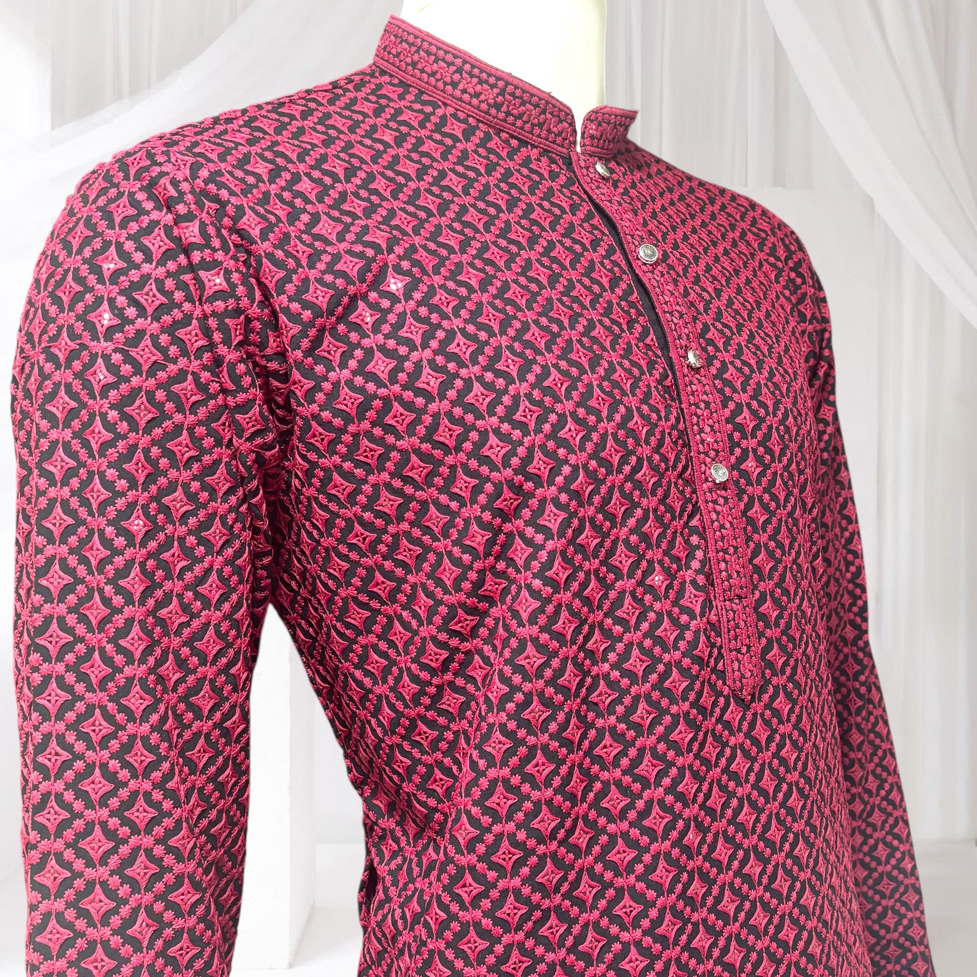 "Jairaj" Premium black rayon kurta with contrast thread work.