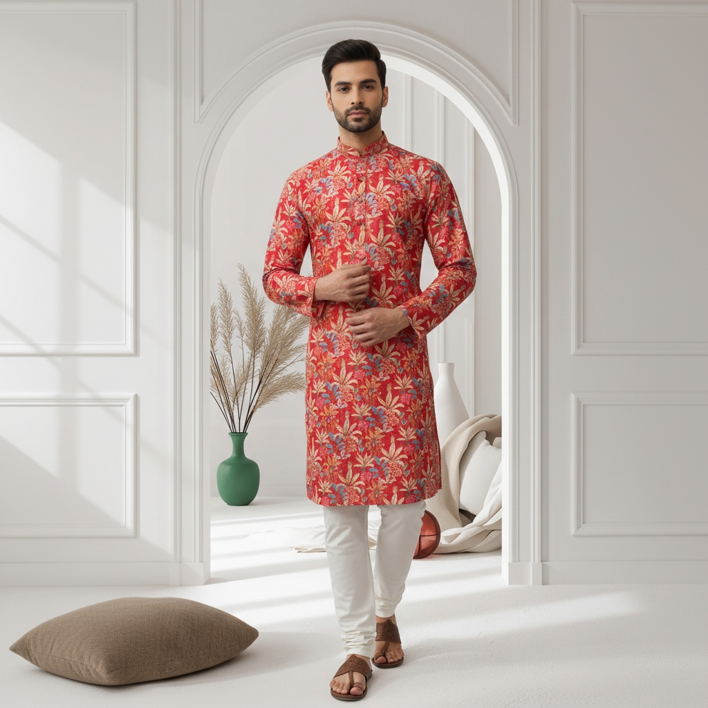 "Vaidik" Premium digital printed kurta with thread and sequins work.