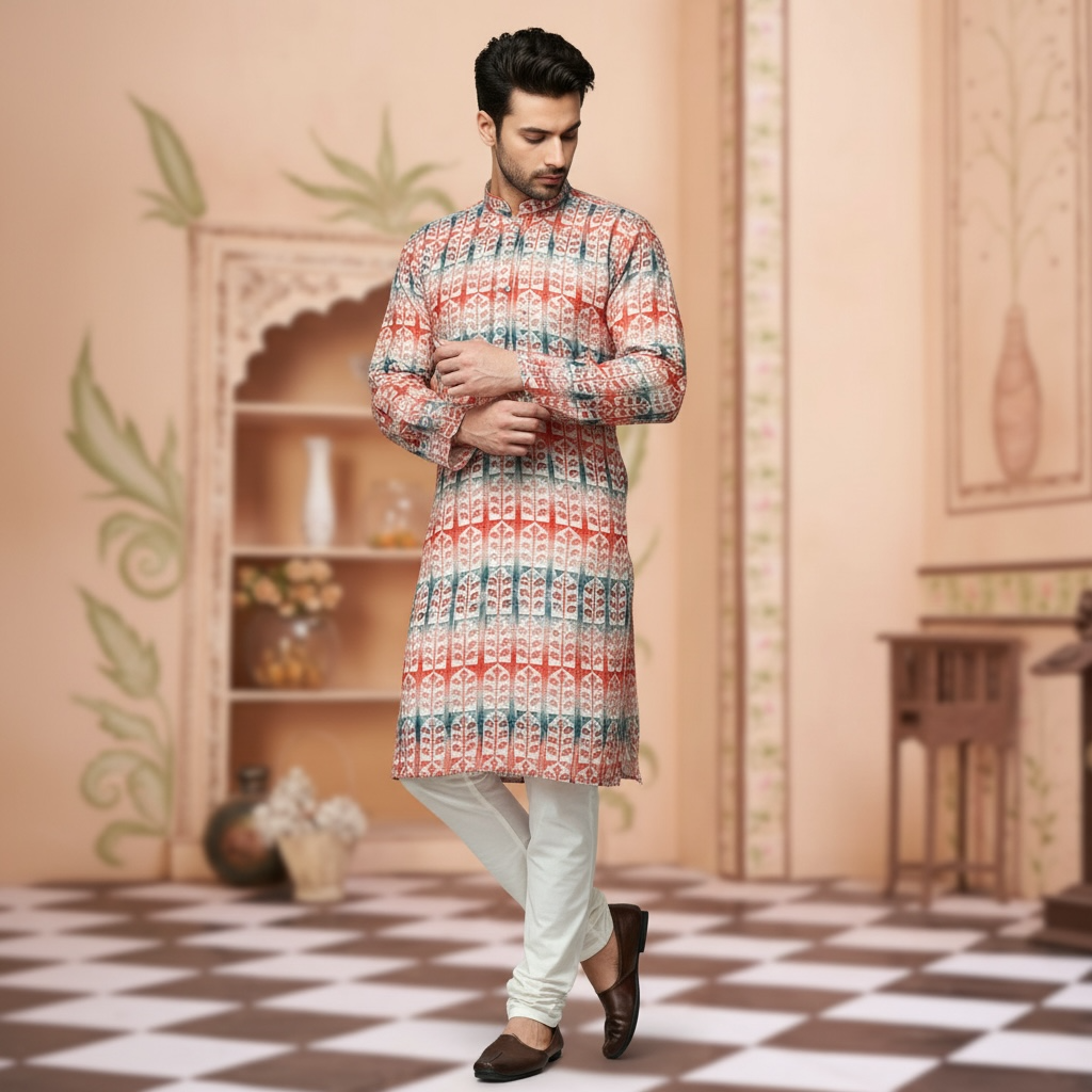 "Yuven" Premium digital printed kurta with thread and metallic sequins
